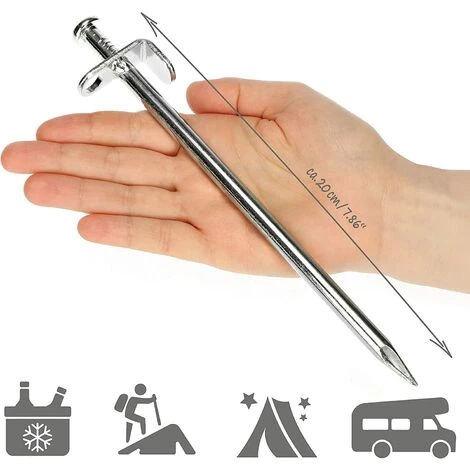 GRAND ÉQUIPEMENT: Les piquets de tente de 20 cm de long offrent une tenue optimale et sont idéaux pour les activités de plein air telles que le camping, les tentes, la pêche, les festivals, etc.!