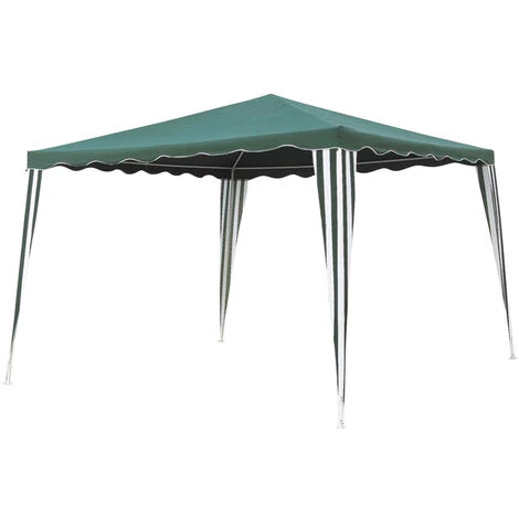 Square. Sa structure et son support sont en acier. Sa couverture en combinaison de plastique et de polyester vert est étanche. Résistant grâce à ses 4 piliers avec protection en tissu. Surface large de 8,7 m².
