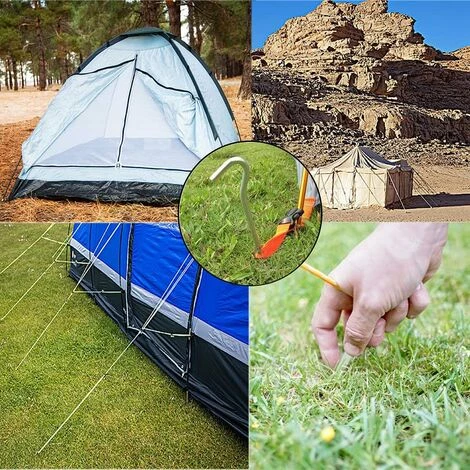 - 『Large gamme d’applications』: Les piquet de tente sol dur pour la fixation des tentes de camping, des auvents, des bâches, Il est très approprié pour le camping en plein air.