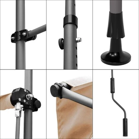- [Hauteur réglable] Grâce à 10 trous sur le tube et aux pieds réglables, la hauteur de l’auvent de balcon peut varier entre 2 et 3 m.