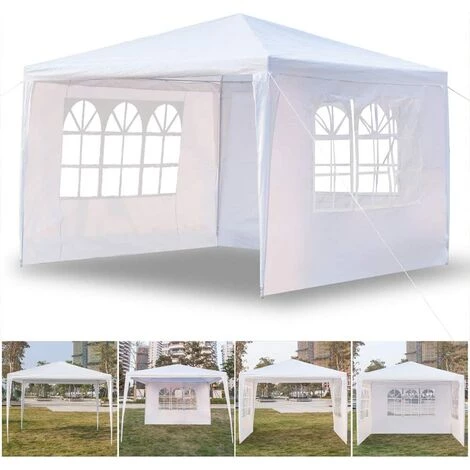 TALKEACH Tente De Réception 3 X 3 M Sur Trois C?tés Avec Tubes En Spirale Blanc