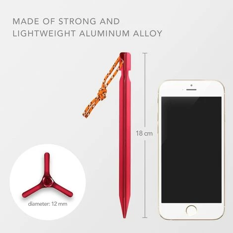 Matériel: Le mât de tente est fait d’alliage d’aluminium ultra-léger.Le matériau robuste et durable a une haute résistance et un poids léger, mais il est très approprié pour fixer la tente ou l’auvent avec une corde sur le sol mou ou le jardin.