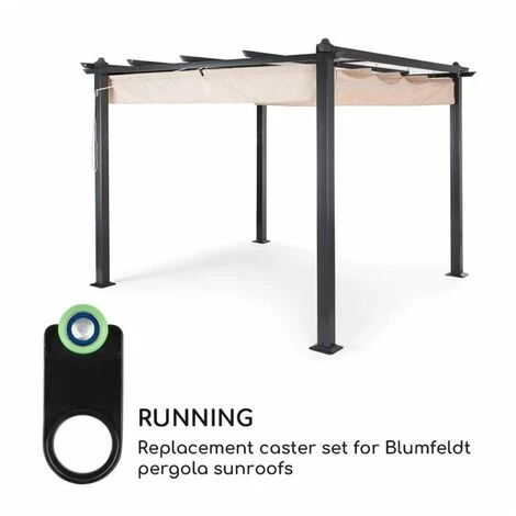 L’ensemble de roulettes Blumfeldt permet aux toits des pergolas de Blumfeldt de continuer à glisser en douceur sur leurs rails et assure que rien ne vienne ternir le plaisir estival de la terrasse et du jardin. Le kit comprend 15 crochets de rechange avec roulettes pour un remplacement facile et simple des crochets.