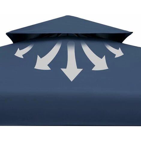 La toile de toit UV 50+ est en polyester résistant et la face intérieure possède également un revêtement en PU hydrofuge. Par ailleurs, le toit se fixe facilement et rapidement au cadre de la tonnelle à l’aide de bandes auto-agrippantes, conférant ainsi à la toile une tension optimale. Il contient également des œillets métalliques permettant d’éviter la formation de poches d’eau en cas de pluie. Selon vos besoins, vous pouvez fermer ces œillets avec les bouchons en plastique fournis.