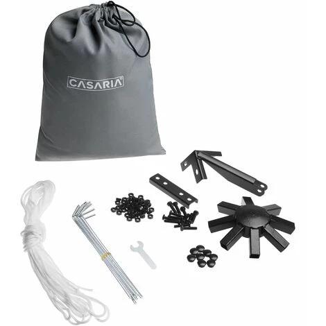 La tente de jardin est dotée d’un système de double toit assurant une circulation de l’air optimale à l’intérieur de la pergola. L’armature est montée à l’aide de connecteurs sécurisés et les 20 piquets ainsi que les 4 cordons veillent à une fixation stable dans le sol.