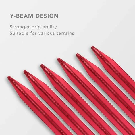 Matériel: Le mât de tente est fait d’alliage d’aluminium ultra-léger.Le matériau robuste et durable a une haute résistance et un poids léger, mais il est très approprié pour fixer la tente ou l’auvent avec une corde sur le sol mou ou le jardin.