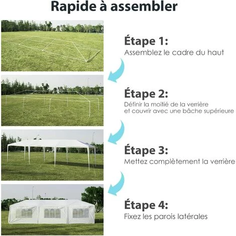 Notre produit est fabriqué avec des tubes métalliques à revêtement électrique et en PE de qualité supérieure, il est antirouille ce qui permet sa longue durée de vie. En outre, l’ensemble du gazebo est relié à des accessoires solides et plus épais, de sorte que la structure soit stable après l’installation et face aux aléas climatiques. Livré avec 6 parois latérales amovibles avec fenêtre transparente, le gazebo peut garder la chaleur et améliorer la ventilation à l’intérieur. Il convient à de nombreuses activités comme le camping, les pique-niques, les événements sportifs de plein air, etc.