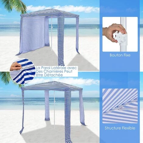 - 【Grande zone d’ombrage et paroi latérale amovible】la cabane de plage mesure 4 mètres carrés d’ombre, offrant une zone de repos suffisante pour les couples, la famille ou les amis pour profiter des fêtes. De plus, il existe une paroi latérale qui peut être détachée par des fermetures à glissière, vous permettant de profiter d’une protection solaire maximale et d’une intimité supplémentaire.