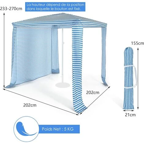 - Dimensions hors tout : 202 x 202 x 233-270 cm (L x l x h)