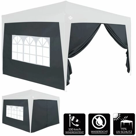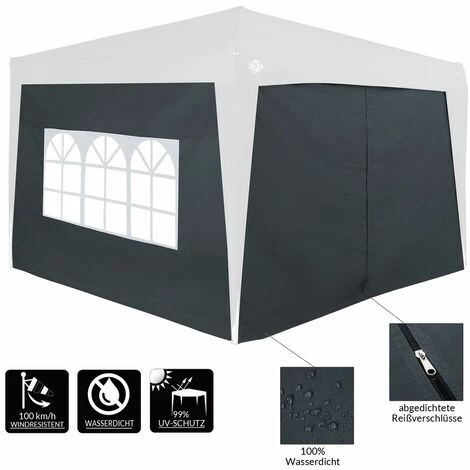 Les parois latérales conviennent à tous les pavillons d’une longueur latérale de 3 m / 6 m. Deux de ces sets ferment un pavillon complet (3×3 m).