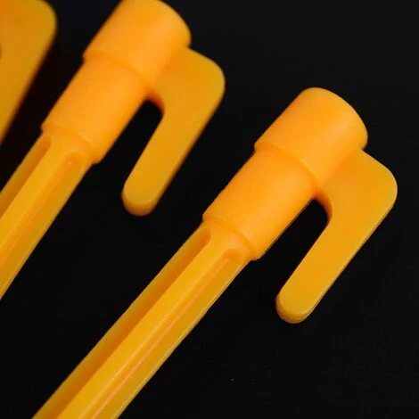 Les clous de tente en plastique jaune vif sont clairement visibles et ne se perdent pas facilement.