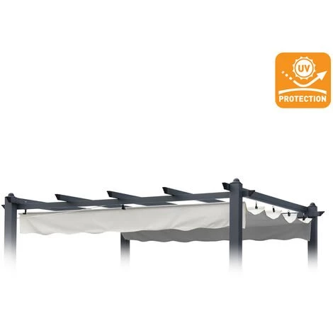 Ce toit de remplacement peut être positionné sur un système coulissant afin de pouvoir être fermée en cas de vent fort ou pendant l’hiver lorsque la tonnelle n’est pas utilisée. Tissu polyester blanc renforcé 240 g/m2 déperlant et résistant aux intempéries. Assemblage simple et rapide.