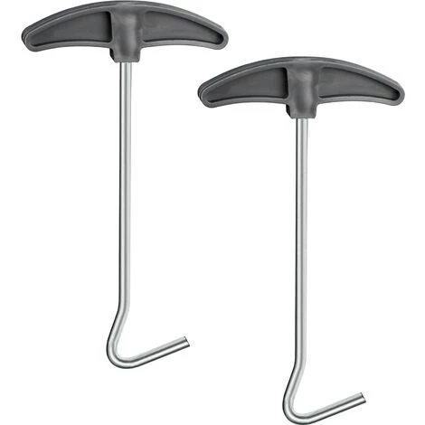 Matériau de qualité supérieure : la poignée est en plastique de haute qualité et le crochet est en alliage, ils sont robustes et durables. Pack de 2 x extracteurs de piquets de tente.
