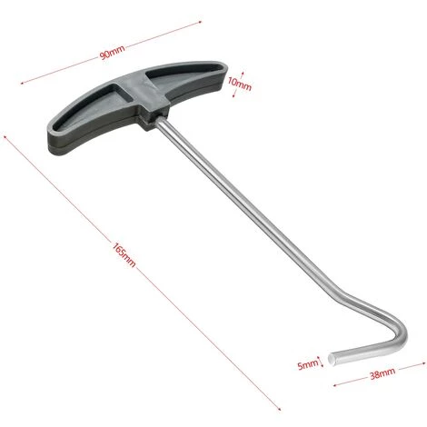 * Insérez simplement l’extracteur de crochet dans le trou ou sous l’œil du piquet, vous pouvez facilement retirer le piquet de tente du sol sans vous blesser les mains.