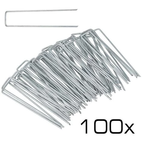 Ces ancrages au sol sont extrê mement polyvalents. Fabriqué s en mé tal galvanisé , avec un diamè tre de 3 mm, ils sont particuliè rement solides et ré sistants. Les extré mité s aiguisé es permettent une fixation facile mê me dans les sols plus durs ou pierreux. Grâ ce à leur forme arrondie en U, les ancrages de fixation restent particuliè rement plats dans le sol. Comme ils n’ ont pas de crochets, ils ne laissent pas de fissures dans les bâ ches ou les films aprè s utilisation.