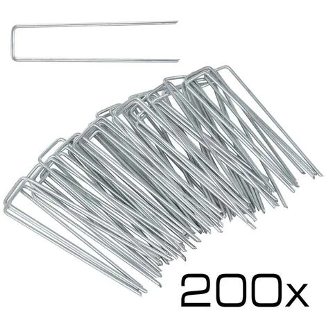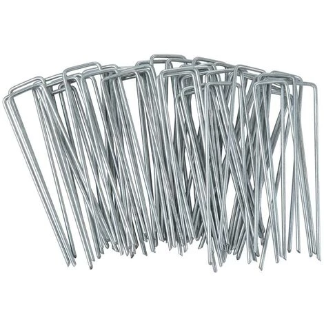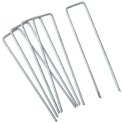 Ces ancrages au sol sont extrê mement polyvalents. Fabriqué s en mé tal galvanisé , avec un diamè tre de 3 mm, ils sont particuliè rement solides et ré sistants. Les extré mité s aiguisé es permettent une fixation facile mê me dans les sols plus durs ou pierreux. Grâ ce à leur forme arrondie en U, les ancrages de fixation restent particuliè rement plats dans le sol. Comme ils n’ ont pas de crochets, ils ne laissent pas de fissures dans les bâ ches ou les films aprè s utilisation.