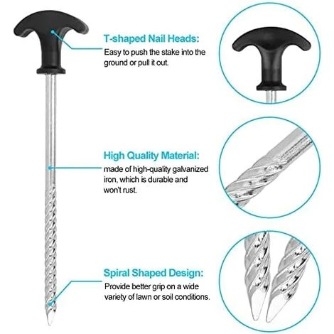 【Facile à utiliser】Poignée en forme de T et pointe de fer pointue, vous pouvez facilement enfoncer le piquet dans le sol ou le retirer, léger et facile à transporter