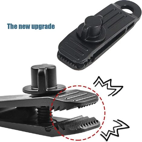 【Conception】 Le clip a une bouche de crocodile, la bouche en forme d’engrenage garantit que le clip mord fermement la bâche. Il y a un trou de l’autre côté qui peut connecter un bouton ou une corde en métal.