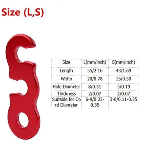 Ce produit est fabriqué en alliage d’aluminium solide, qui est durable et peut être utilisé pendant une longue période. La conception à 3 trous facilite la manœuvre et offre un réglage sûr et antidérapant de la longueur du cordon. Tu as Disponible en deux tailles, diamètres de corde de 3 mm à 9 mm. Parfait pour les activités de plein air qui nécessitent une tente ou un abri.