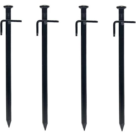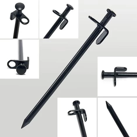 1. Placez le piquet à un angle de 60 degrés par rapport au sol et fixez le crochet à la tête du piquet au sol.