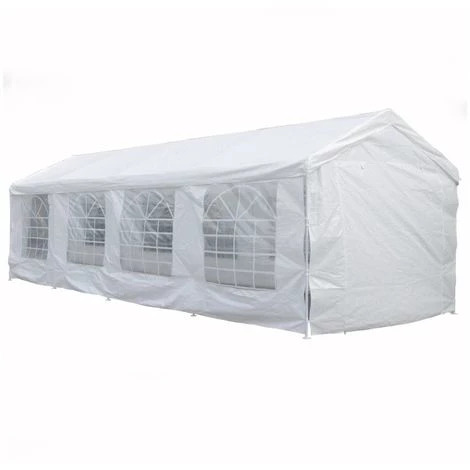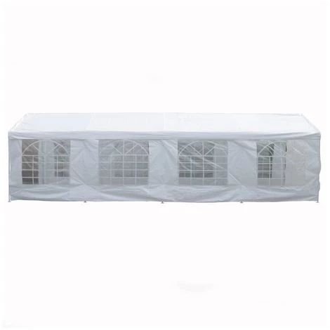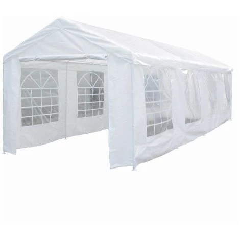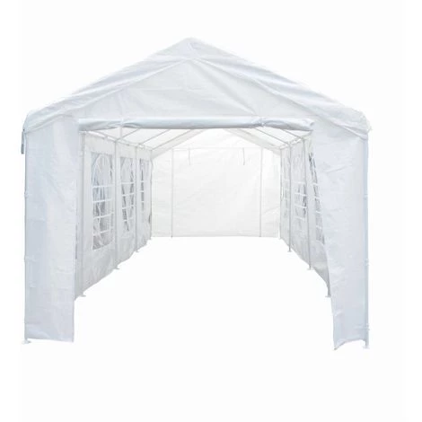 Tente de réception de jardin « Célia » – Dimensions : 890 x 290 x 270/200 cm – Blanc – Structure : acier – Toile : polyéthylène – ImperméableTente de réception de jardin « Célia » – Dimensions : 890 x 290 x 270/200 cm – Blanc