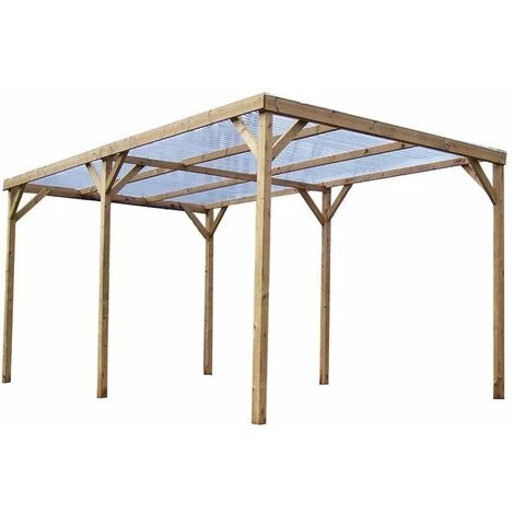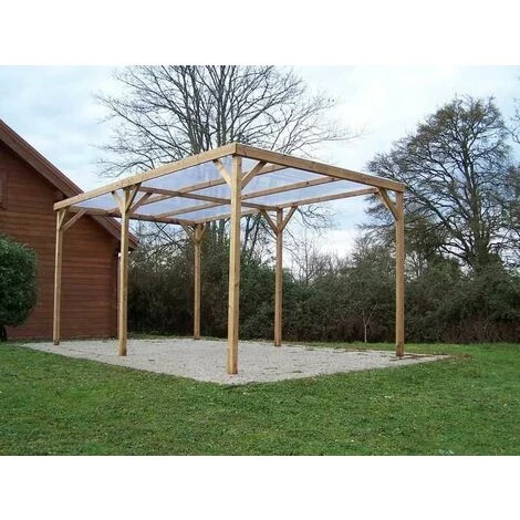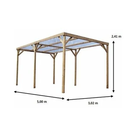 Pergola fabriquée en bois massif traité – dimensions 3,00×5,02 m – Couverture tôle PVC transparente