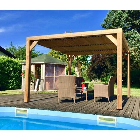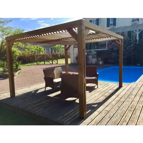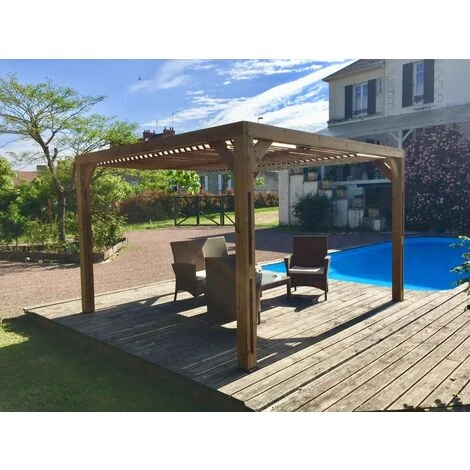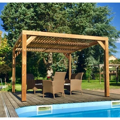 Pergola fabriquée en sapin traité très haute température à 215°C sans aucun ajout de produit de synthèse