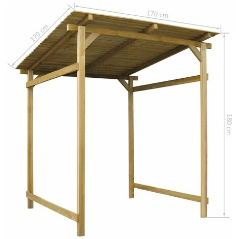 Cet auvent robuste en bois est une structure de jardin pratique et couverte qui sera idéale pour ranger une vaste gamme d’articles de jardin, tels que du bois de chauffage, de grands outils de jardin, de mobiliers de jardin ou tout autre article que vous souhaitez stocker à l’extérieur comme des vélos. L’abri de stockage durable est fait de bois de pin imprégné, qui est résistant à la pourriture. Le toit en bois est incliné pour protéger vos biens de la pluie et de la neige. L’assemblage est facile. Veuillez noter que le bois est un produit naturel et peut montrer des imperfections.