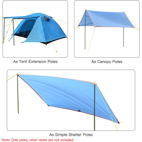 Fonctions multiples, peuvent être utilisées comme poteaux d’extension de tente, poteaux d’auvent, simples poteaux d’abri, etc.