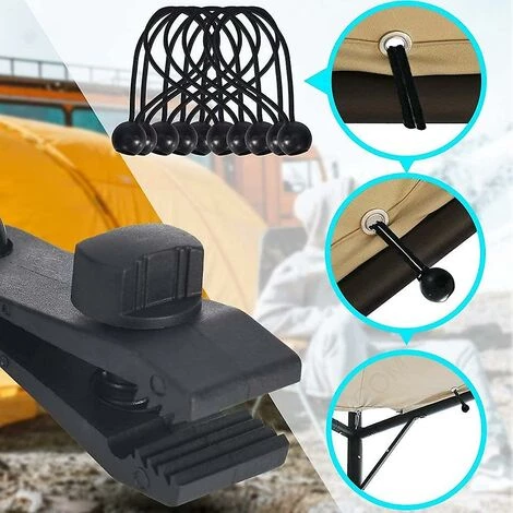 Ce que vous obtenez : 10 clips de bâche noirs inclus ; 10 cordes à billes élastiques noires. Les clips sont dentés et la conception du tendeur maximise le serrage de la bâche. Accessoire idéal pour les tentes de camping en plein air, les auvents, les caravanes et plus encore.
