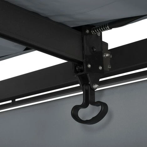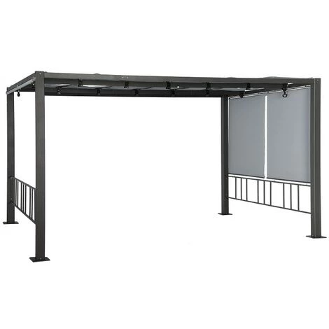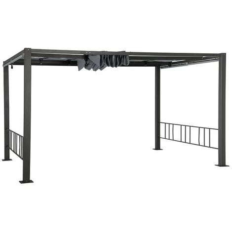 Tonnelle Moai de marque Hespéride. Très originale et pratique, cette tonnelle est équipée de rideaux latéraux et d’un toit rétractable. Les ouvertures des 4 panneaux latéraux et du double toit sont indépendantes. Pieds 10×10 cm. Plaques percées au pied pour la fixer au sol : 20×20 cm. A monter soi-même. Coloris gris ardoise. En aluminium, acier et polyester. Dimensions 3×4 m, hauteur 250 cm. Poids 48 kg.