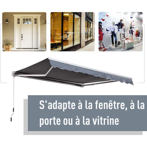 Notre boutique vous propose un éventail de six couleurs de stores bannes auvents manuels. Couleurs disponibles: crème uni, vert uni, gris uni, vert et blanc raye, orange et blanc raye, bleu et blanc raye. Ces stores bannes auvents manuels, occultant et imperméables, décoreront avec élégance votre jardin et terrasse ou bien même votre devanture de boutique!
