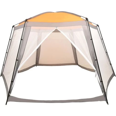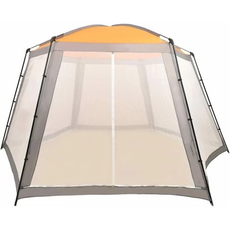 La tente de piscine est un accessoire idéal pour la piscine afin de créer de l’ombre. L’abri peut être utilisé comme protection solaire au-dessus de la piscine ou comme toit pour votre groupe de sièges. La tente de fête est fabriquée en polyester avec revêtement en PA, ce qui la rend résistante aux UV et à l’eau. Avec un cadre en acier fort, la tente d’événements est robuste et durable. Grâce aux parois en maille, le pare-soleil est bien ventilé. Elle convient aux piscines rondes d’un diamètre maximal de 500 cm. Remarque : Ce produit ne doit JAMAIS être utilisé par mauvais temps, tel que vent fort, pluie abondante, neige, tempête, etc.