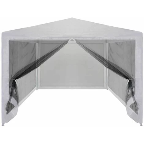 Notre tente de réception avec parois latérales en maille est parfaite pour tous ceux qui veulent avoir une sensation de plein air mais qui ne veulent pas avoir des problèmes avec les insectes lors d’activités en plein air. Cette tente de réception sera idéale pour un grand nombre d’événements en plein air, telles que spectacles, mariages, fêtes, barbecues, festivals, etc. Fabriquée en acier enduit de poudre, cette tente de réception est extrêmement durable. Le revêtement de toiture est en polyéthylène de haute qualité, ce qui le rend résistant à l’eau et aux UV. La tente dispose de quatre parois latérales en maille qui vous protègent des insectes nuisibles. L’une des parois latérales a une entrée à fermeture éclair pour un accès facile. La tente de réception est facile à installer avec les accessoires de montage inclus. REMARQUE : ce produit ne doit JAMAIS être utilisé par mauvais temps, tel que vent fort, pluie abondante, neige, tempête, etc.
