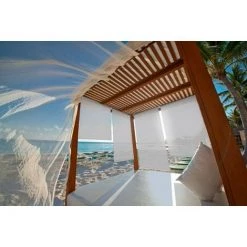 HAPPY GARDEN Store Banne SAULE 3,95 × 3m – Toile Rayée Blanche/grise Et Structure Blanche – Blanc
