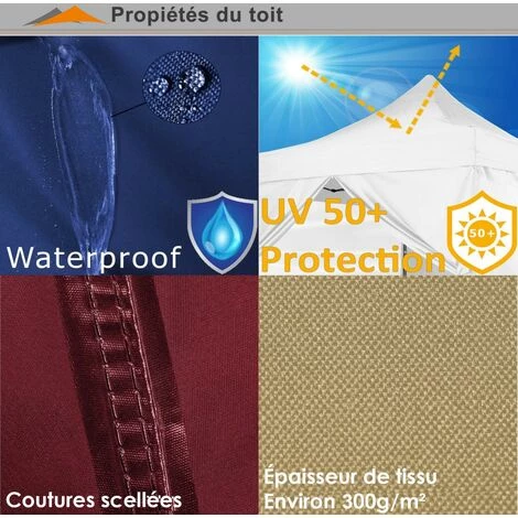 - Toit: environ 300g/m² polyester 300 D (avec revêtement PVC).