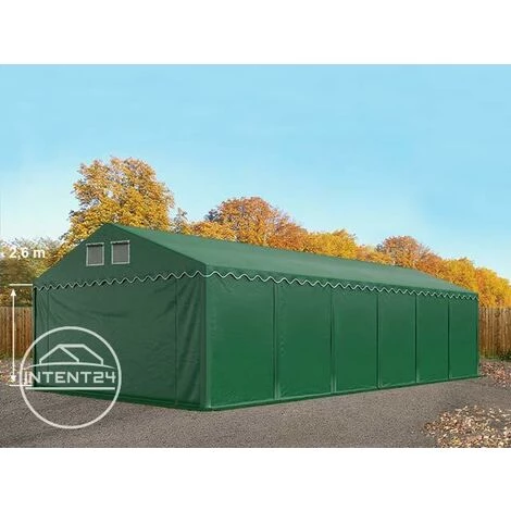 Tente de stockage TOOLPORT vert foncé 6x12m particulièrement adaptée à une utilisation toute l’année. Grâce à ses éléments de bâches individuels, elle offre plusieurs variations de montage et ainsi plus de degrés de personnalisation. Dans la qualité PROFESSIONAL, la tente dispose de la structure la plus solide de la ligne VARIOStore. Des pieds de tente plus épais renforcés par un cadre de sol et des renforts supplémentaires dans le toit rendent la tente particulièrementstable et résistante aux intempéries. La bâche solide en PVC d’env. 550 g/m² est certifiée antifeu, résistante aux UV et bien-sûr 100% imperméable. Le facteur SPF (protection solaire) de 80+ protège vos biens des rayons UV. En accolant plusieurs tentes les unes à côté des autres et en utilisant les sets de raccordement adéquats, vous pourrez même agrandir à tout moment dans la longueur ou la largeur votre espace de stockage ou de travail selon vos besoins.