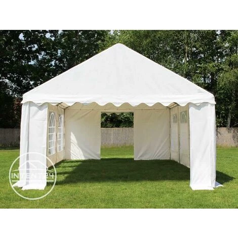 La tente de réception ECONOMY dispose d’une armature très facile à assembler. Les tubes en acier entièrement galvanisés sont traités contre la corrosion. Les bâches en PVC épais d’env. 500g/m² offrent une haute protection contre les rayons UV du soleil (indice 80+) et protègent efficacement contre la pluie (100% imperméables). Les toiles de côtés de 2 m peuvent être montées ou démontées selon vos envies et permettent de multiples aménagements possibles !