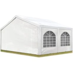 – Toutes les toiles/bâches sont en polyéthylène (PE), le toit est de 240g/m² et les toiles de côtés sont de 200g/m² environ. Les coutures sont doublées pour une meilleure résistance aux courants d’air.