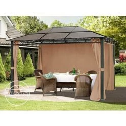 Vous prévoyez une fête en été, une soirée romantique en hiver ? La tonnelle de jardin Sunset Deluxe est certainement la solution qu’il vous faut dans votre jardin. Elle se distingue par son élégance et sa durabilité. Sa structure est en aluminium éloxé. Son toit, constitué de plaques en polycarbonate qui peuvent supporter jusqu’une charge de neige de 80 kg/m², est un garant de durabilité. Son design classique s’adapte parfaitement à l’extérieur. Les plaques translucides, 100% étanches et épaisses de 8mm, laissent filtrer la lumière avec une résistance UV de 50+, ce qui en fait un abri parfait pour tout type de temps. Un système coulissant permet le montage partiel ou complet des 4 parois latérales incluses dans la livraison, offrant ainsi plusieurs possibilités d’agencement tout en lui conférant un style de luxe. Cette tonnelle conçue avec beaucoup de précision et de soin permet un montage facile et rapide. La tonnelle de jardin Sunset Deluxe impressionnera vos invités par son élégance.