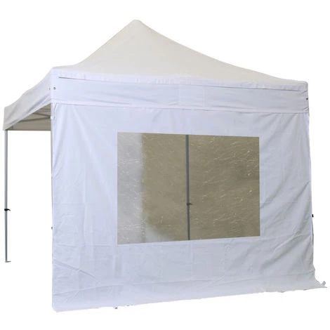 Bâche latérale fenêtre simple pour nos gammes de tentes pliantes Alu 40. Fixation aux tubes et à la bâche par velcro. Les bâches latérales s’accrochent entre elles par fermeture éclair. Bâche en polyester pelliculé PVC 300g/m² imperméable.