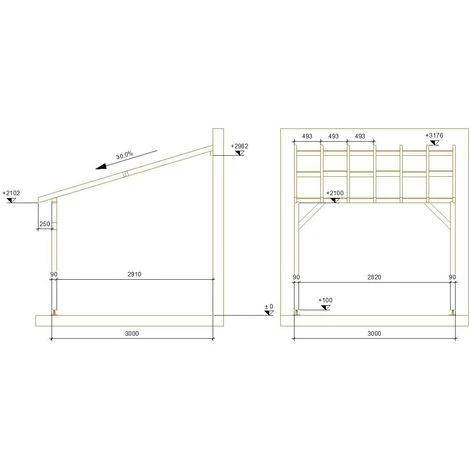 Toit de terrasse |3×3| – Pente 30% – Bois massif traité CL3 Marron – Durable |