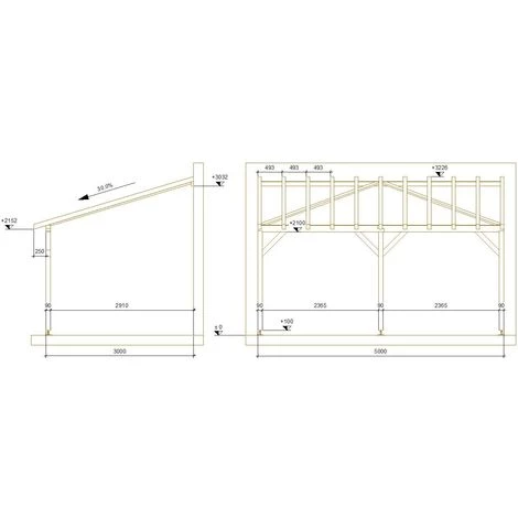 Les sections utilisées pour la conception vous garantisse la possibilité de tuiler votre appentis avec une pente à 30%.