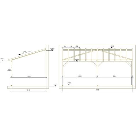 Les sections utilisées pour la conception vous garantisse la possibilité de tuiler votre appentis avec une pente à 30%.