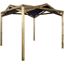 La pergola ECLIPSE est une pergola très contemporaine, décorative en plus d’être efficace ! Grace à cette pergola, votre salon de jardin sera à l’abri et ajoutera une touche de charme à votre jardin ! Amateurs de dîners entre amis ou de sieste à l’ombre, laissez-vous séduire par cette pergola. Son bois est traité autoclave classe 3, afin de vous garantir une très haute résistance à l’humidité et aux alternances répétitives d’humidité et de sécheresse. Il est labellisé FSC garantissant une gestion durable de la forêt d’où provient ce bois. Essence du bois : Pin Livré en kit avec toile polyester Fixation toile fournis Supports de fixation au sol non fournis, à sélectionner selon la nature du sol