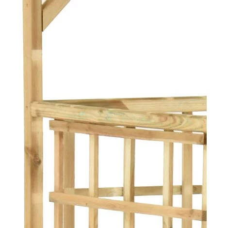 Cette pergola en bois pour poubelles doubles fait un complément décoratif parfait à votre jardin ou tout espace extérieur. Cette jardinière en bois est faite de bois de pin imprégné vert, ce qui la rend très robuste, durable et résistante à la pourriture. Le treillis intégré constitue un excellent support pour les roses ou autres plantes grimpantes. Cette pergola de jardin est adaptée pour placer 2 bacs et elle offre un beau fond. Veuillez noter que le bois est un produit naturel et peut présenter des légères imperfections.
