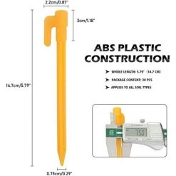 LTS FAFA Lot De 30 Piquets De Tente En Plastique Abs – 14,5 Cm – Jaune