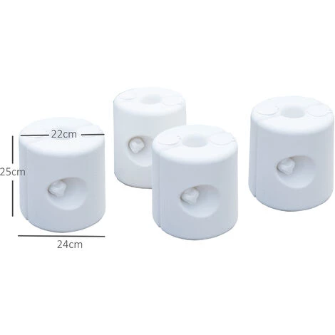 Ce lot de 4 poids de lestage cylindrique maximisera la stabilité et sécurité de votre tonnelle, barnum, tente, chapiteau, etc… Par condition ventée, vous pourrez attacher un poids à chaque pied de votre tonnelle.