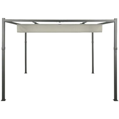 La toiture autoportante peut être facilement fermée et ouverte. Le tissu est fixé au cadre en 6 points. Lorsque vous faites glisser le tissu pour l’ouvrir, il se plie proprement. En étendant la toile, vous pouvez créer une zone ombragée extra large. Pour prévenir la rouille et prolonger la durée de vie de l’article, il est préférable de le stocker au sec après utilisation dans une période humide prolongée.