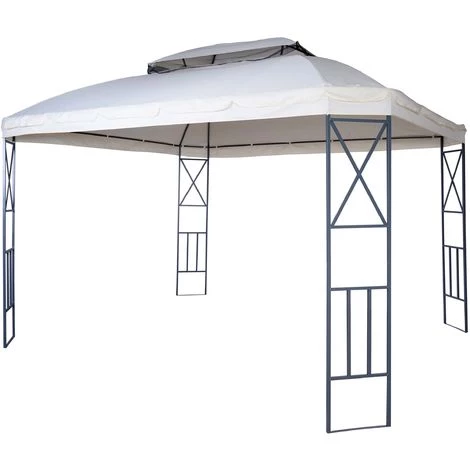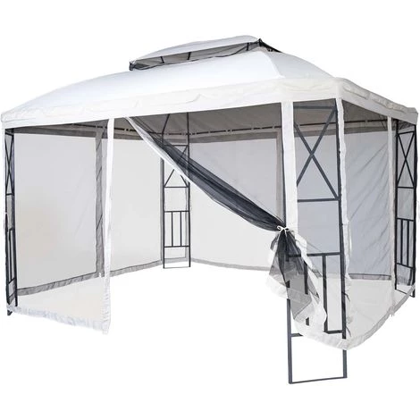 Pergola HHG-610, pavillon de jardin avec moustiquaire, 3,6x3m ~ crème